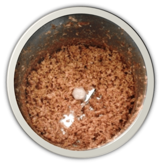 Begin by washing and cleaning the dry prawns, and remove the heads. Roast the prawns and grind them in a mixer jar until they turn into a coarse powder.