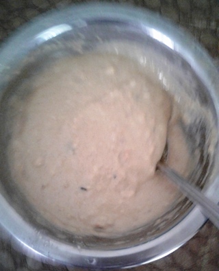 Add melted jaggery and a little water to form a thick and smooth batter. Adjust jaggery quantity for preferred sweetness.
