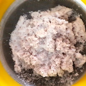 Since I am too lazy in scraping coconut, I just cut them into pieces and blend in mixer grinder without water and I get scraped coconut in a minute. I took 1 big coconut to make more milk because we all love to drink this even the next day. If you want it to be pure white just scrape off the brown portion of the coconut before slicing. Grind the coconut and add 2 cups water. Squeeze off the thick milk and keep aside. Add 2 cups of water again and take the milk and keep aside. Get the jaggery melted with ¼ cup water. Strain and keep aside. If you have a juicer jar can use that.