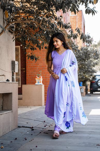 Paired with the churidar top, the churidar bottom would feature a slim-fitting silhouette with gathered fabric at the ankles, giving it a traditional yet trendy look. The stretchy and wrinkle-free fabric would ensure a comfortable fit throughout the day.