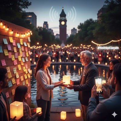 When the sun begins to set, the celebration shifts to reflection and gratitude. This is the time to light lanterns, candles, or even the glow of your phone flashlights to honor someone whose kindness once made a difference in your life. Streets shimmer with tiny points of light—silent thank-you’s floating in the dusk. It’s a powerful, quiet moment of connection. Ultimately, Kindness Cascade Day is more than a holiday—it’s a yearly reset button for our shared humanity. We know the science: kindness boosts feel-good hormones and lowers stress, but the magic goes beyond biology.